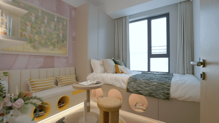 户型特点:全明格局、三房朝南、高得房率、主卧270°转角飘窗、LDK一体化设计,部分户型实现一梯一户私密体验