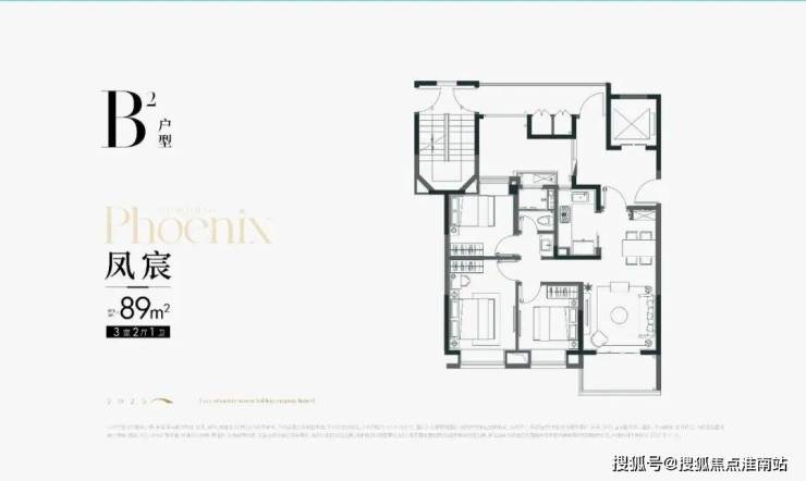 · 建面约89㎡户型则做到了3房的功能性,且三开间朝南+动静分区,设计水准颇高!