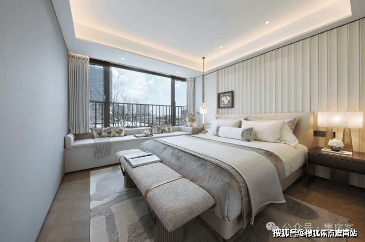 在春来晴翠园建面约169㎡晴翠户型中,最亮眼的设计显而易见——主卧90°转角窗,揽获270°环幕视野,将天光云影尽纳室内。不仅引入绝佳采光与风景,更成为一处心灵栖所。