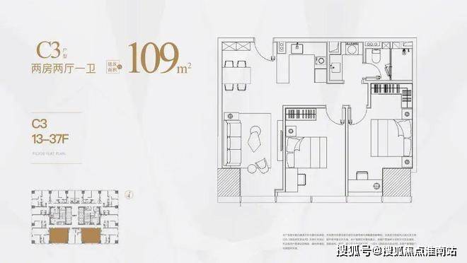 建面约80-88㎡,位于13-24F,客餐厅厨房都有功能更齐全