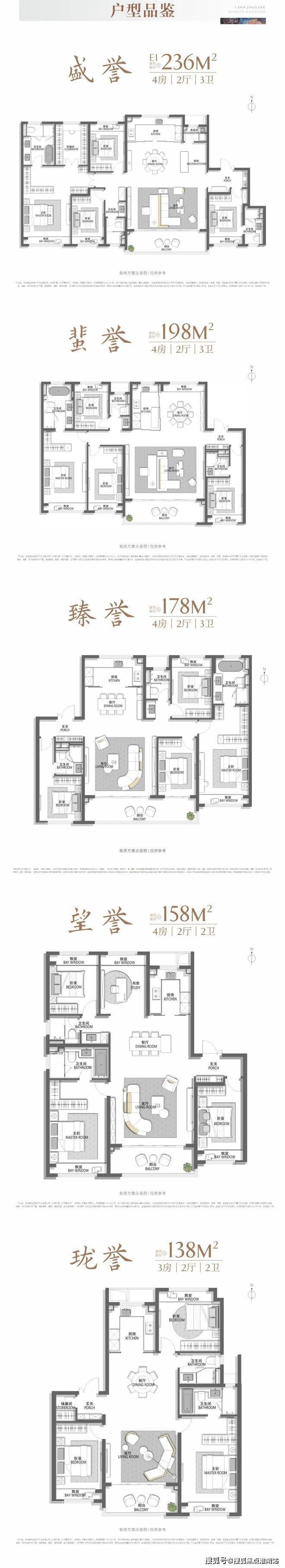 户型配比:建面约158㎡、198㎡、228㎡