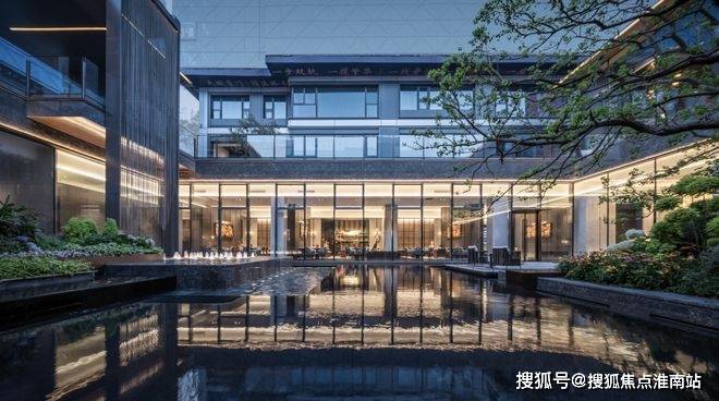 山水入画营造下沉式中央庭院 ,约12米飞流星瀑,臻选蓝翡翠奢石打造银河水境,百年丛生乌桕封藏四季风景,邀山水融自然,一方东方禅意画境