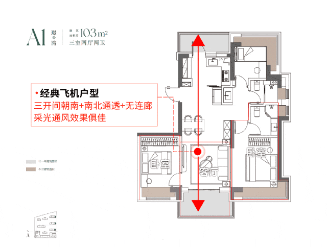 其次,独立电梯厅是项目标配,仅建面约103㎡户型
