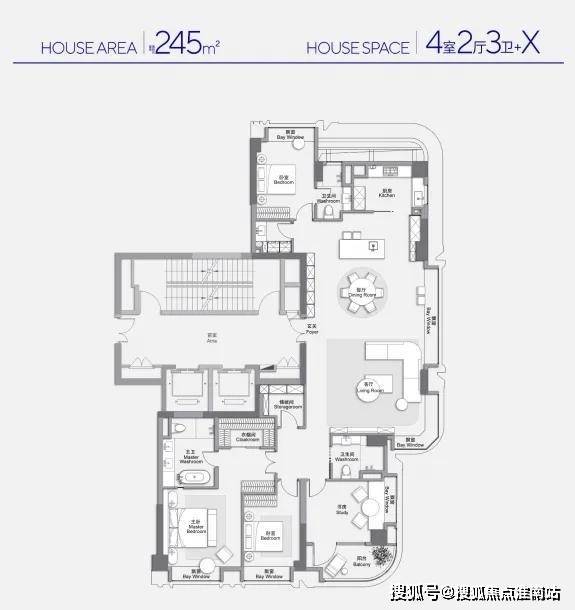 项目建面约245㎡户型过程稿,以开发商实际发布为准