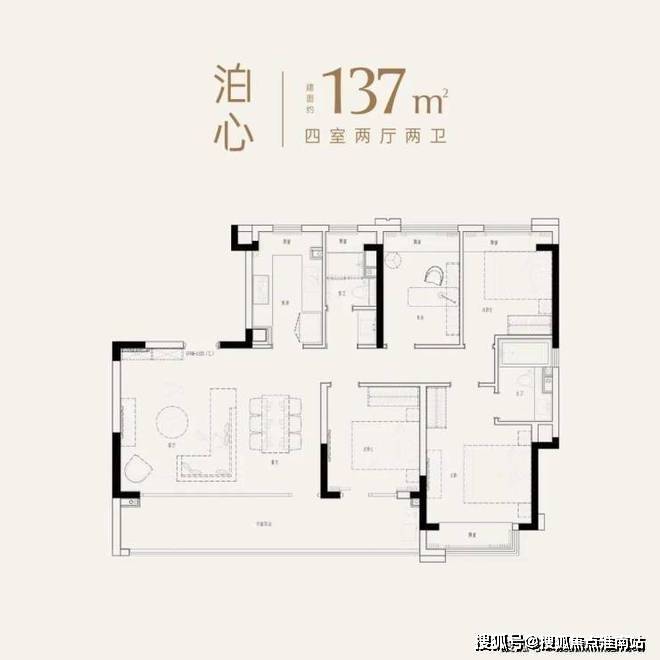 还有一个建面约137㎡四房户型,与上个户型格局相似。