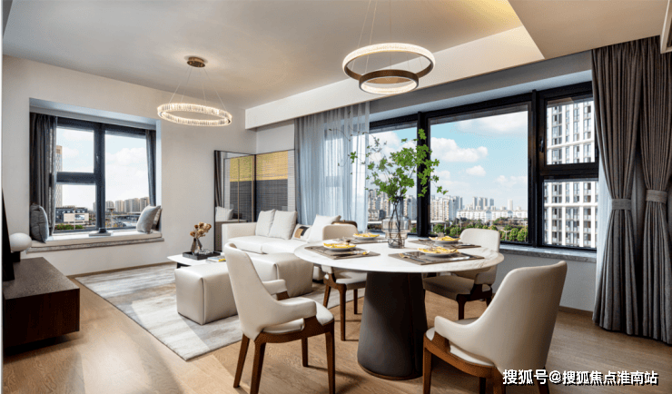 约6.5m超宽横厅搭配独特的转角大飘窗设计,让空间更为通透舒心,为居家时光增加更多明媚的阳光与心动的风景。