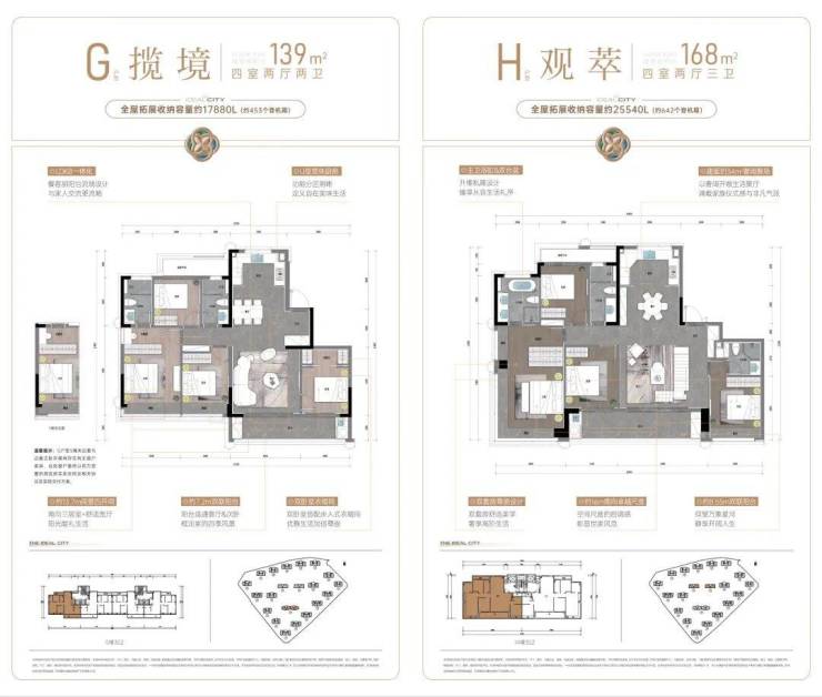 三房户型96,107,108方(已售罄)。四房户型125(仅剩4席),128(售罄),139方(剩余主力在售),楼王139方南厅,168方(剩余可选)。