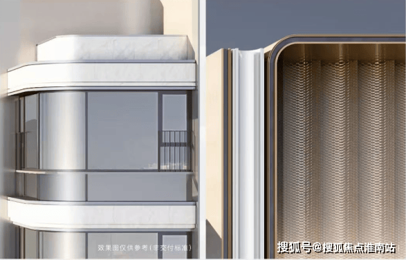 全球先锋地标皆以科幻艺术感的弧形曲线设计,无论弧形鎏金塔冠、弧形辊轮铝板、弧形转角玻璃,【大华·静安年华】建筑采用曲线弧形设计弧形,亦致敬了吴同文住宅的流线之弧