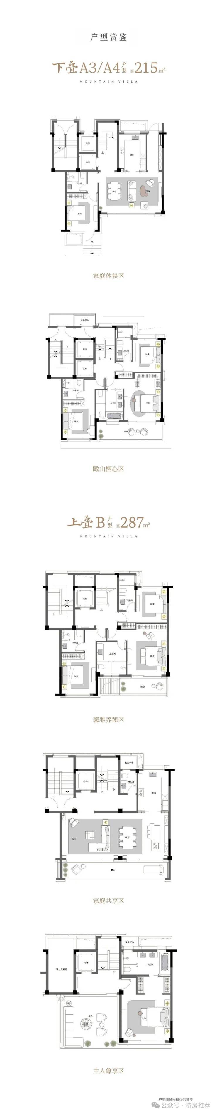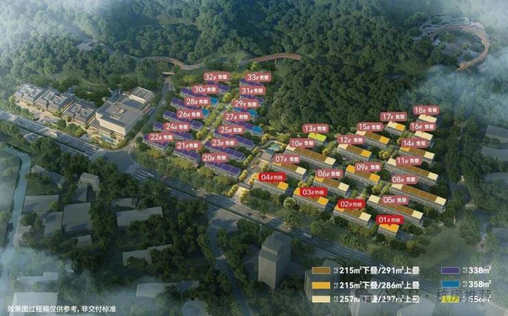 在售户型面积:215-297㎡上下叠排(排屋338㎡已售罄)