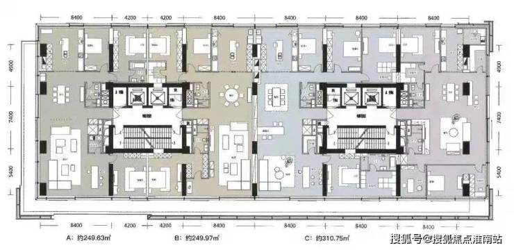 • 面 积:200.96㎡-𝟐𝟓𝟎.𝟏𝟒㎡(交付三房两厅三卫)