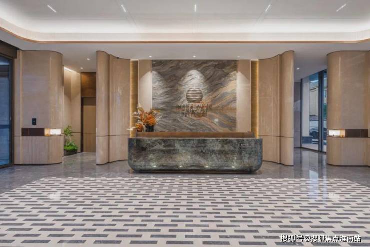 迎宾大道的两侧,浅米色的仿石材景墙与大堂入口遥相呼应,纯净的质感、古铜色的装饰、简约的线条,搭配着酒店式的雅奢之境,创造出优雅、静谧又松弛的体验。