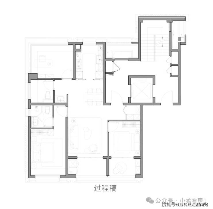 四面宽,南向总面宽14.2米,客厅面宽4.3米、进深7米,客餐厨阳台一体化大横厅直接拉满空间感。三阳台的设计,还能后期灵活改造。