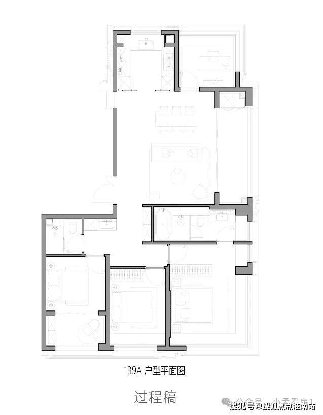 直接放大招,五面宽,南向总面宽17.2米,客厅面宽8.2米,主卧面宽5.4米,自带衣帽间、独立收纳空间。三个套房设计,把豪宅该有的尊崇感安排得明明白白。