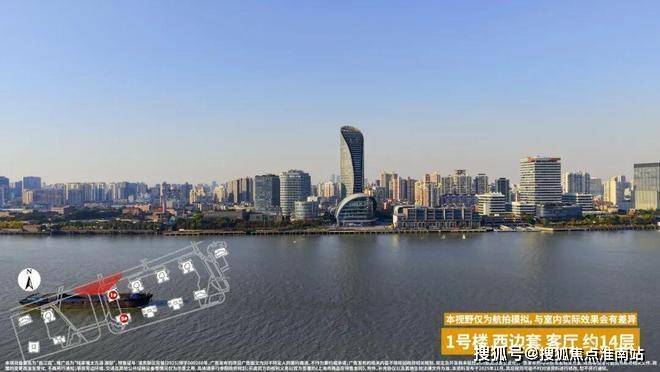 其一,滨江首排占位+占据约1.5公里黄金江岸线,定义顶豪江景天花板.