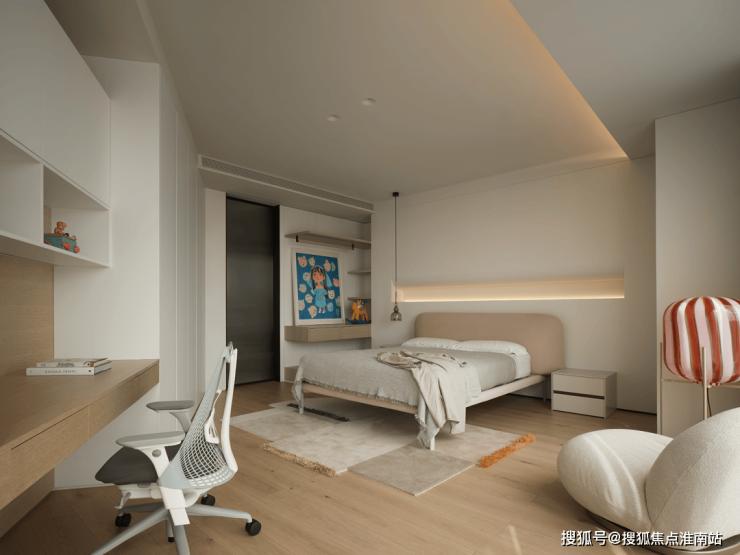 长廊是动静空间的过渡区域,通过光线和艺术品的点缀,让人的视觉体验更加舒服。