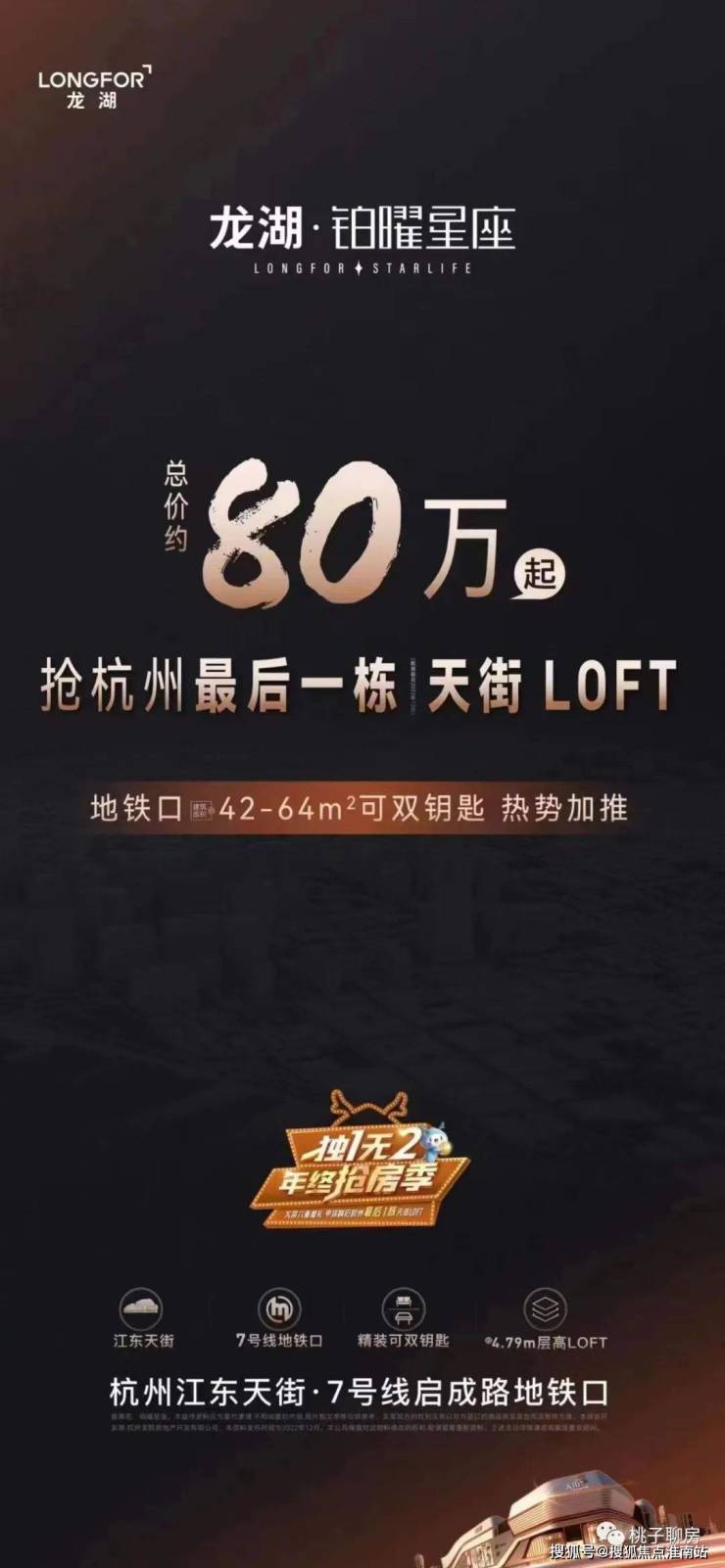 杭州龙湖铂曜星座售楼处电话:400*9939*964建面约42-64㎡精装双钥匙LOFT产品