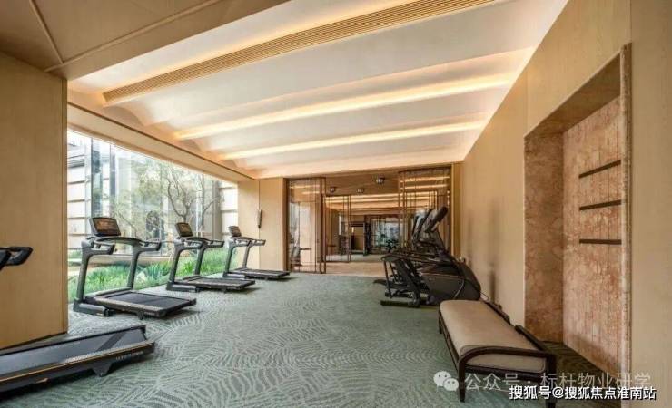 杭州住宅项目里首个270°视野的恒温景观泳池。这个泳池位于园区C位,以45°探入庭院,并以弧形落地玻璃窗隔断,向着光的方向,游着游着,就仿佛游到了花园中。