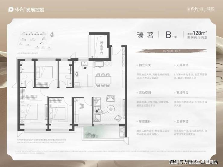 「保利海上瑧悦」面积约99-128㎡3-4房,每一种户型设计,朝南大面宽的全明格局,直接大大提升室内的采光度与视觉的通透感。