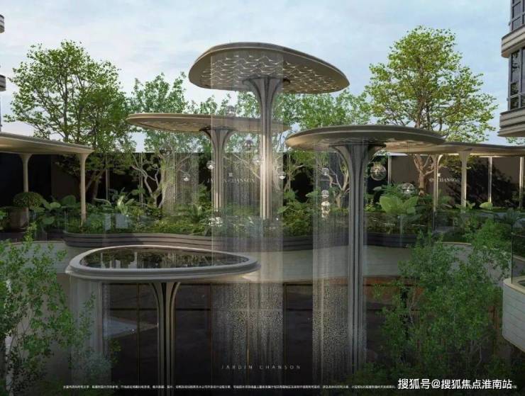 它也采用多见于豪宅新盘的 风雨连廊,打造风雨无阻的归家体验的同时。风雨连廊的造型与景观巧妙呼应,别有意趣。