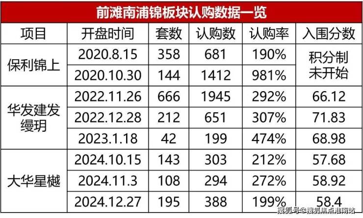 从2020年至今,浦锦板块一直逢开必爆,2020年入市的保利锦上在没有积分制的年代创下千人摇的神迹;之后的缦玥、大华星越都次次触发积分!