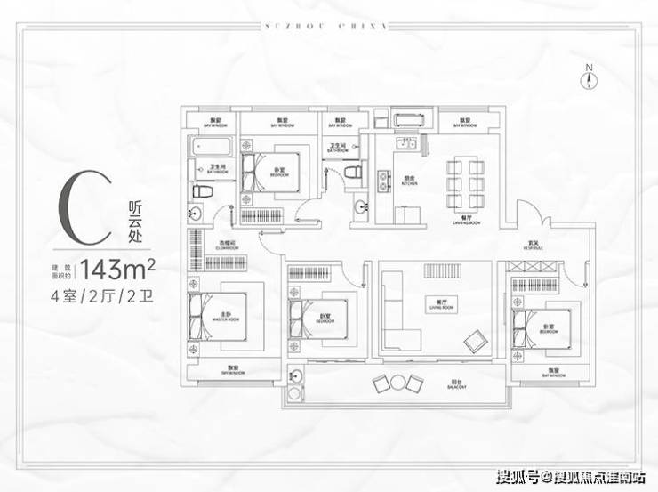 户型设计:提供建筑面积约103㎡至168㎡的多种户型,包含三居和四居,采用均尺空间营造和大横厅规划