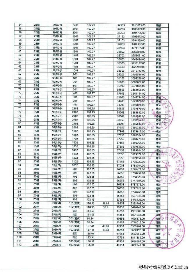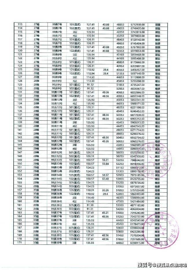 以下为项目最新一房一价表
