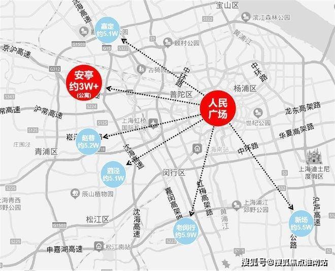 通过百度地图测距我们发现:安亭距离虹桥主城区直线距离仅约5公里,但总价仅约300万级!