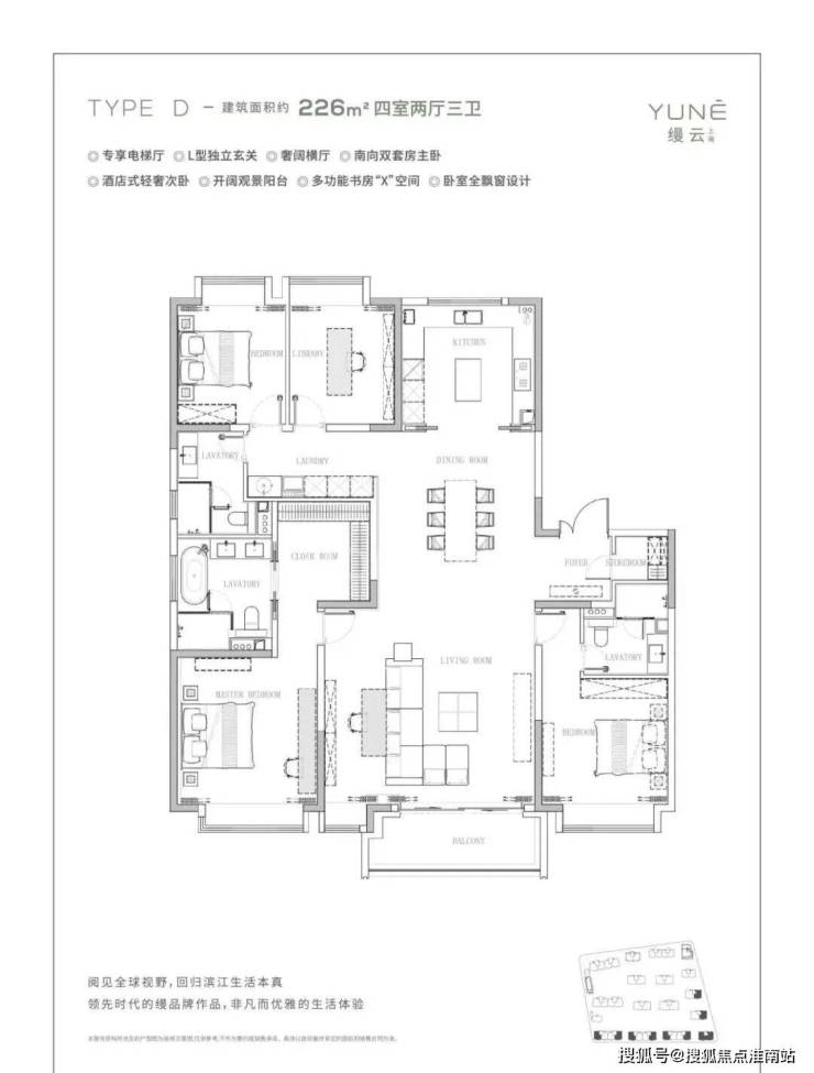 全铝板的天际线立面、一梯一户的私密纯粹,三重入户大堂统一高端酒店标准,270°观景会客厅,约3.3米层高及7.8米面宽,产品的每一面都是如此独特而赏心悦目,超越市面主流尺度,大幅提高居住舒适度。