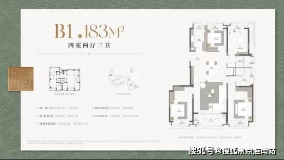 建筑面积约183㎡户型,类一梯一户设计,电梯厅私密入户,无需路过/被路过同层邻居家门,尊享悦己的静谧;四个房间,适配全家庭结构,从小太阳到三代亲都能轻松托举;标配飘窗,厨房双卫皆明媚,每一处都有阳光与自然的盛情款待;LDKB长厅,打开轩阔的生活舞台,亲友聚会,圈层社交尽显风范;步入式衣帽间,独立卫浴的套房主卧,是给予生活鉴赏家最佳的犒赏。