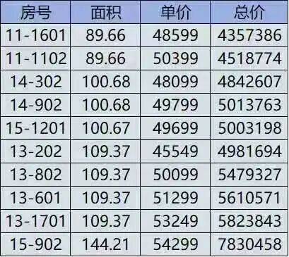 四期一房一价表: