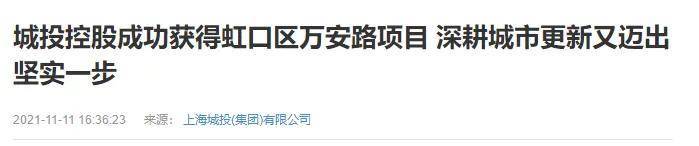 2021年11月9日,城投集团旗下的城投控股与虹口区人民政府共同签订了万安路地块国有建设用地使用权出让协议。