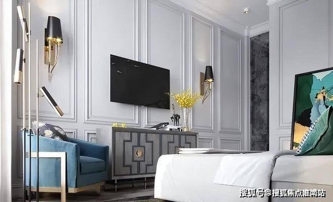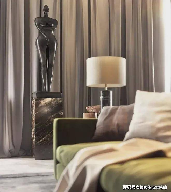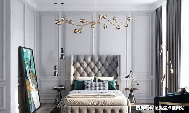 中建虹溪璟庭售楼部电话:400-8818-994主卧室的设计简洁明了,房间里没有多余的设计,床上悬挂着迷人的Serip枝形吊灯,而床头柜和沙发床则是由FlexForm设计的.