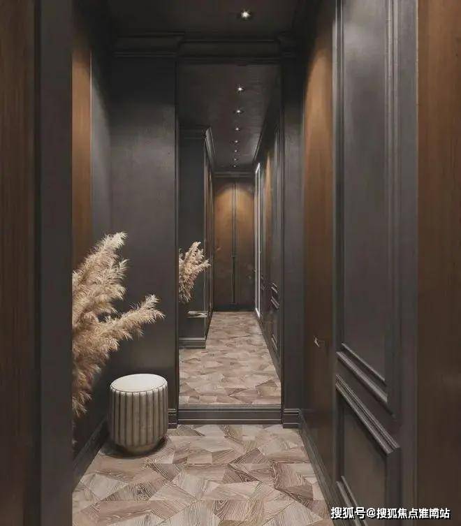 在走廊上,来自B&B的简约玄关柜,设计师放置了一些艺术作品.