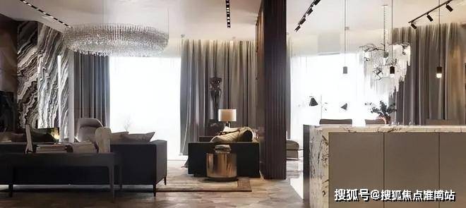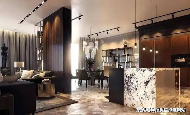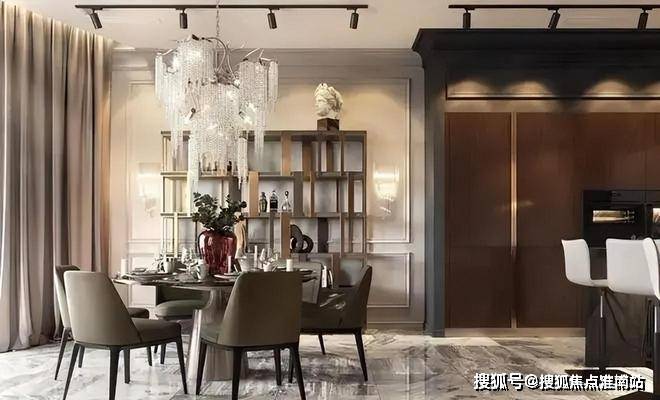 中建虹溪璟庭售楼部电话:400-8818-994开放式厨房与就餐区相连,Poliform椅子,并配有精美的BrandvanEgmond枝形吊灯.整个宽敞的起居区,包括开放式厨房,用餐区和起居区,被整齐地分隔开,但仍然是一个单独的空间,尽管有许多细节,却给人以轻盈和通风的感觉.