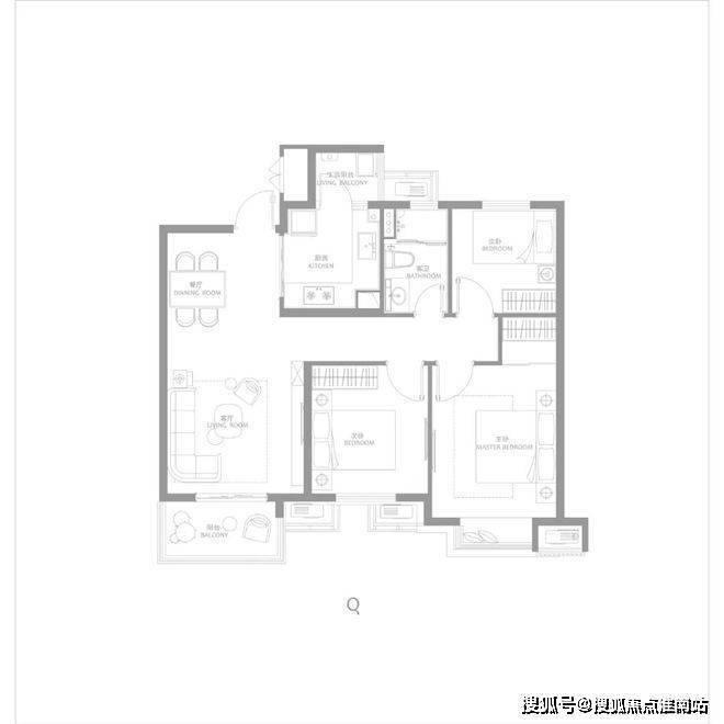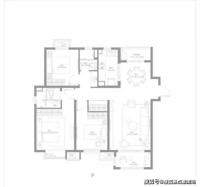 建面约116㎡三房两厅两卫,南北通透,户型方正,主卧大套房,带阳台与独立主卫,更舒适的居住尺度。