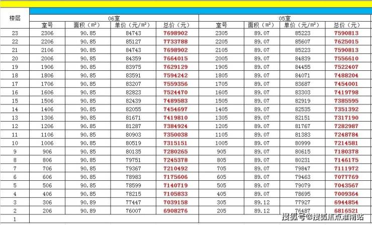 最新一房一价表: