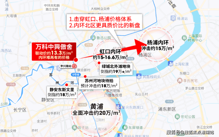 同样内环北区,虹口新盘15-16.6万/㎡,北外滩地块预期19万+/㎡。