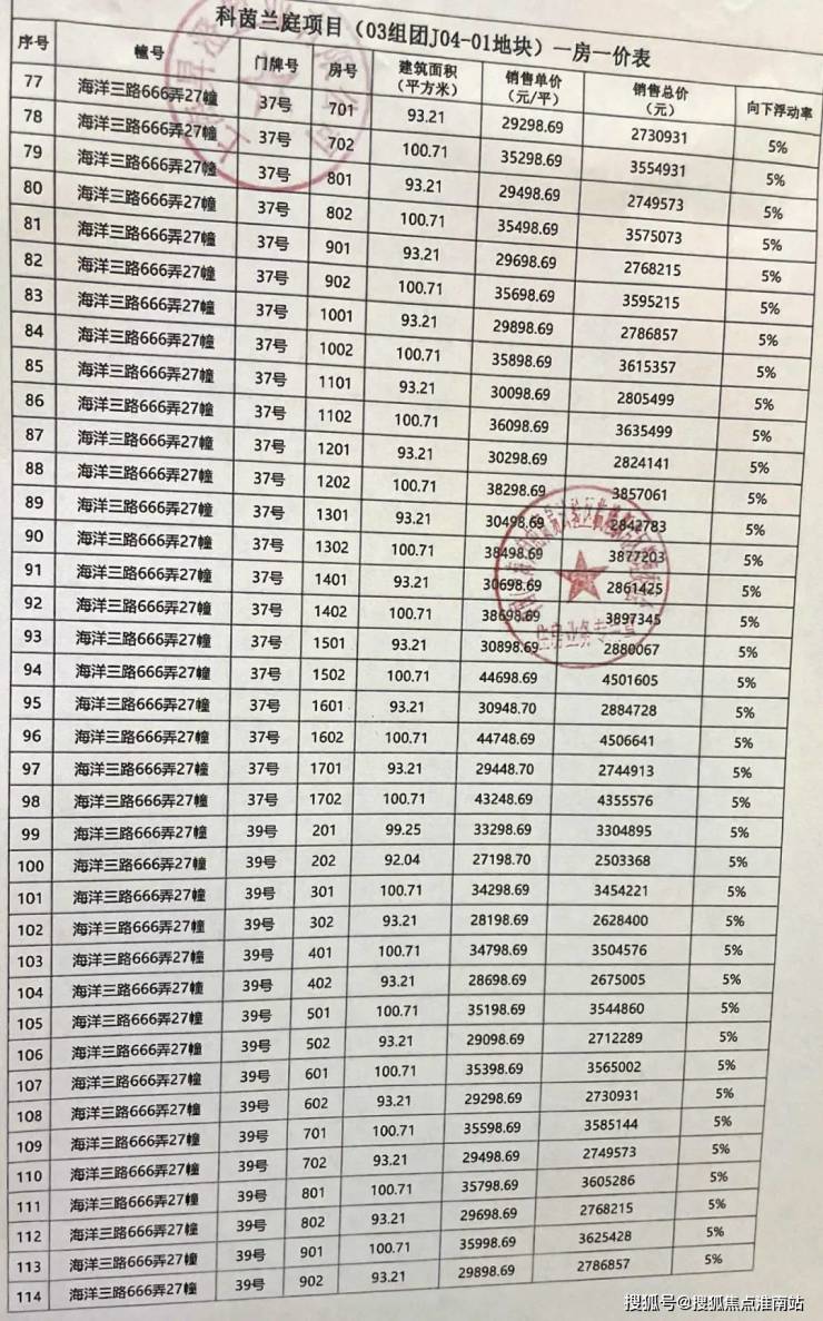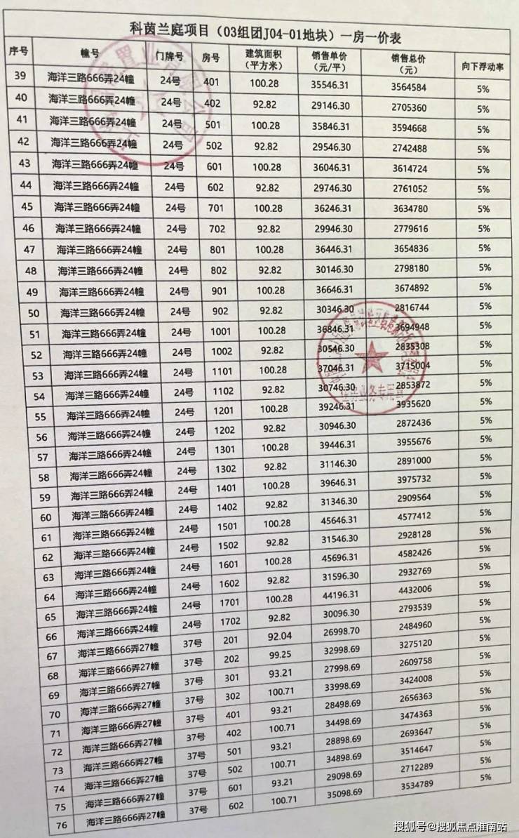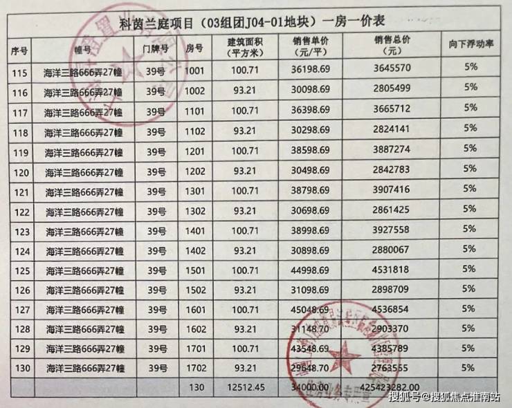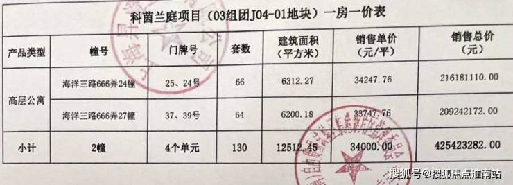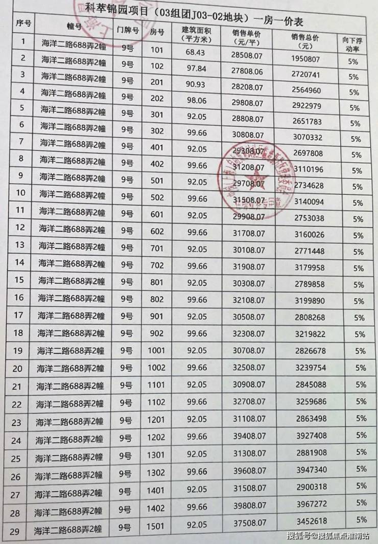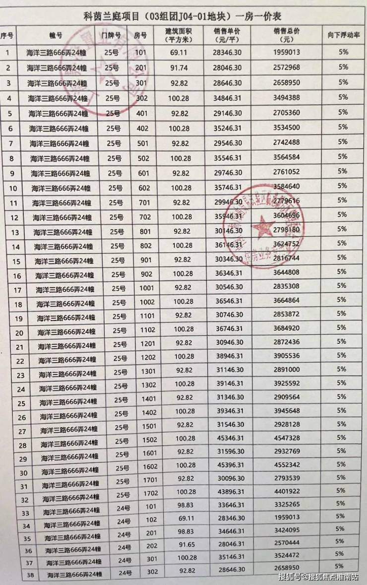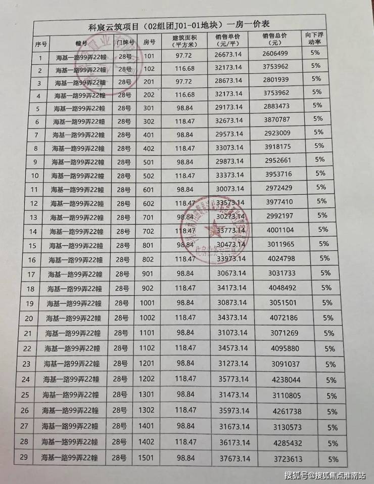 一房一价表如下: