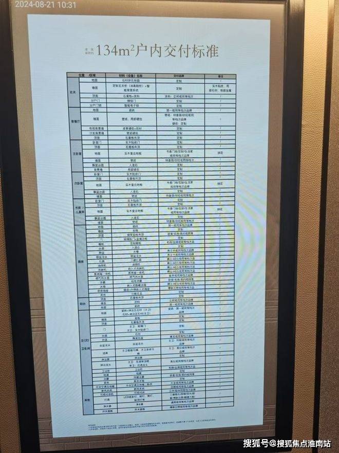 装标,大金的中央空调和地暖,白朗新风。厨房标配博士的三眼灶、油烟机、洗碗机和冰箱,134加配蒸烤一体机;卫生间高仪的洁具和花洒、科勒的龙头。