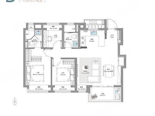 99㎡ 3 房 2 厅 2 卫:单价约 4.3-5.2 万 /㎡,总价423-524 万