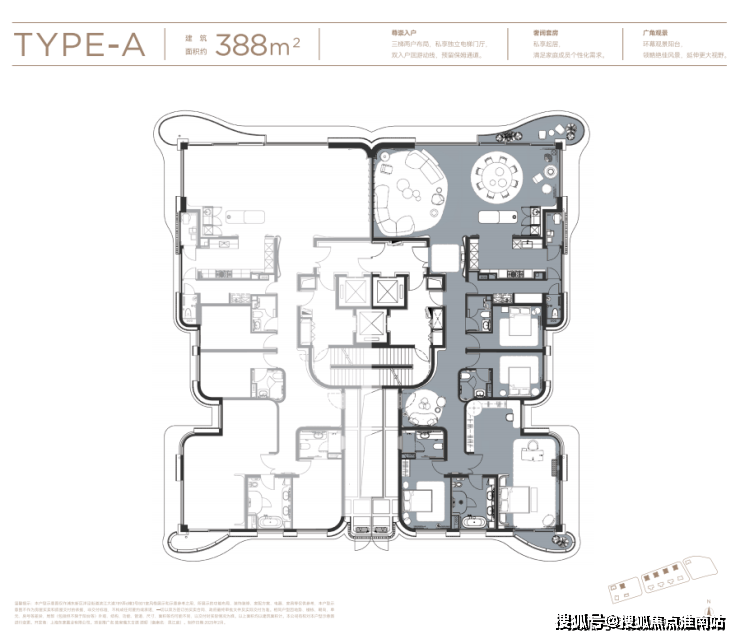 · 塔楼:以中央电梯井和楼梯间为核心、户型环绕分布的高层住宅