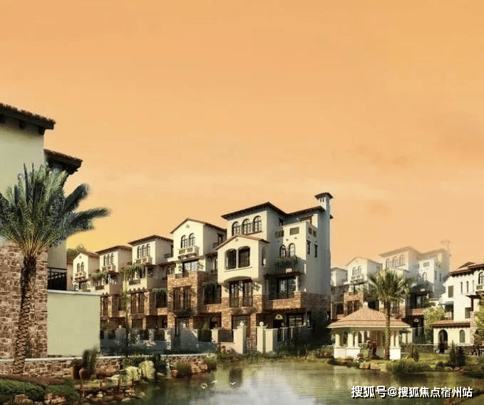 「同润•蓝美俊庭」采用南加州的建筑风格,外立面采用文化石和暖黄色涂料,搭配红色的筒瓦、烟囱、铁艺栏杆等建筑,尽现南加州原乡风情。