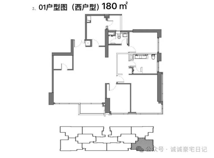180–185㎡户型:三房两厅三卫,边套全明,可定制化改造
