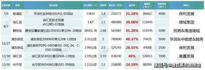 数据来源于上海土地市场