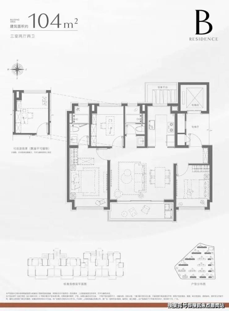 建面约104㎡3房2厅2卫