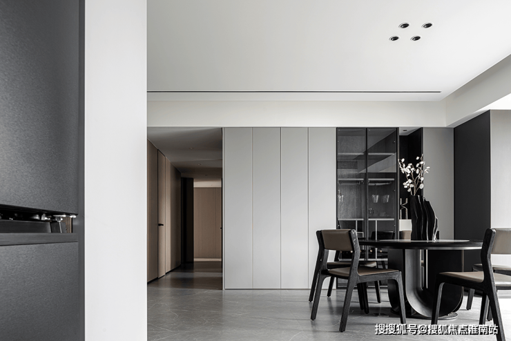 The open layout throughout the design has thrown away the shackles of traditional closure, so that each functional area naturally integrates with each other. Black shaped sofa like a dynamic melody, injected the vitality of the space, its many convex design, but also fit the body curve, for the residents to bring comfortable experience.