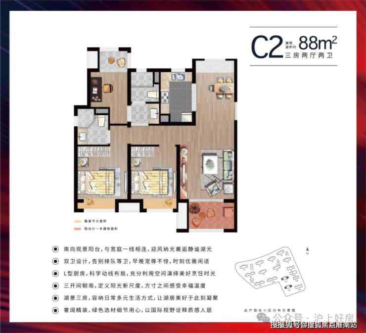 特点:四开间朝南,南向观景阳台。