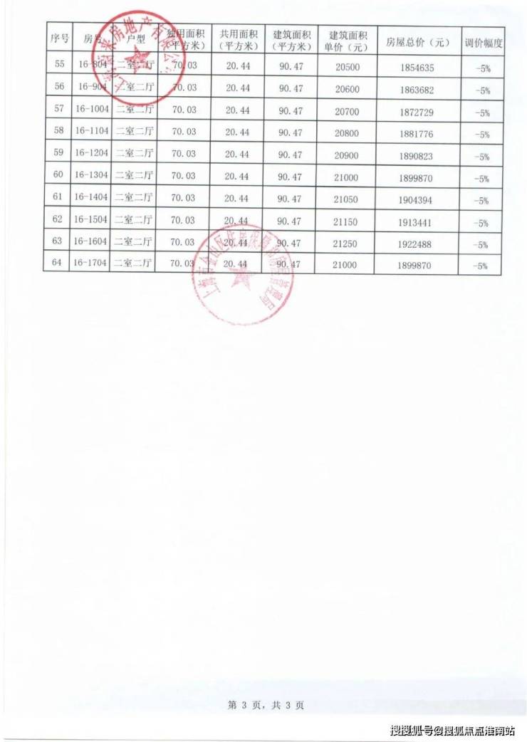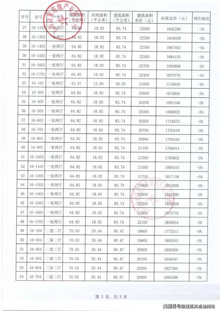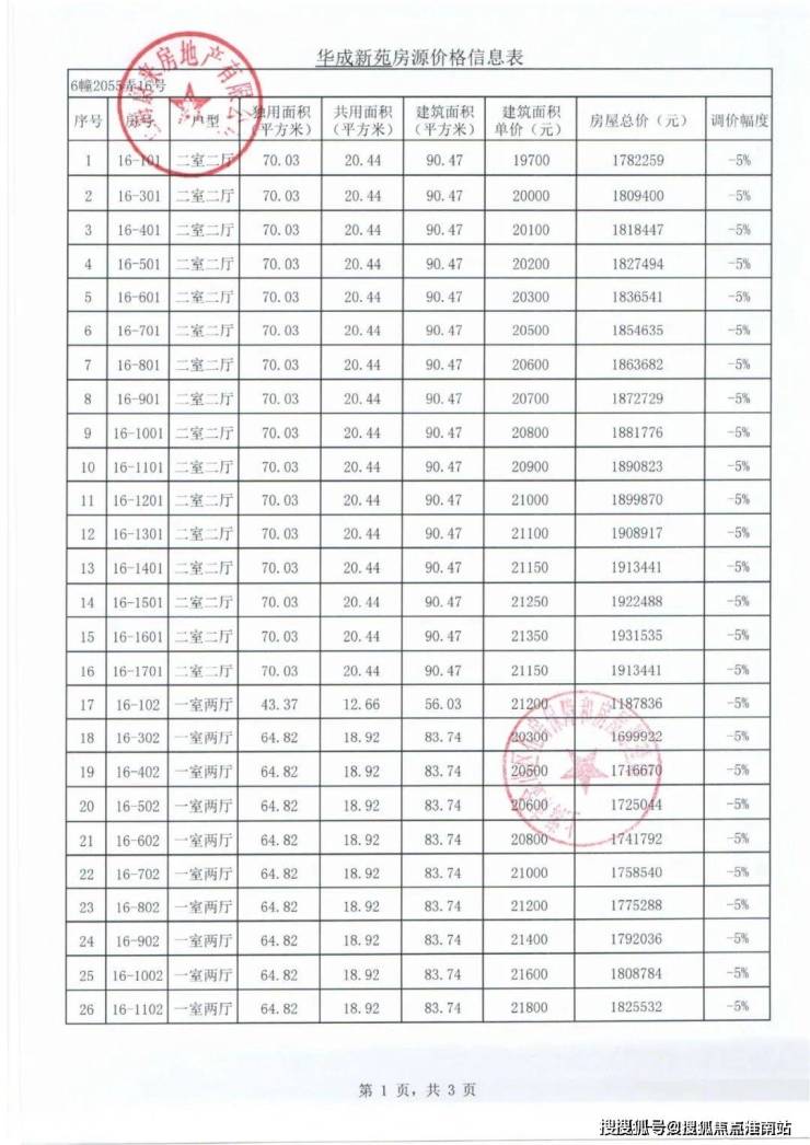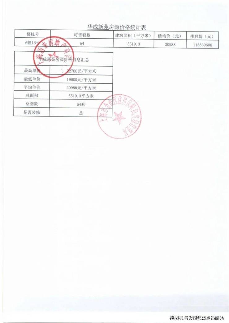 项目一房一价表