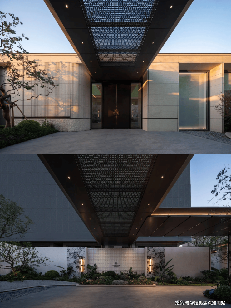 建筑语境|铝板玻璃现代质感建筑立面选用米白与暖灰的现代轻奢色系,铝板线条+涂料一体板组合使用,简约线条设计,彰显现代典雅美学风格。