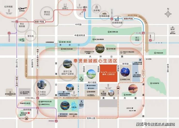 约6公里范围内,聚集龙湖金汇天街、奉贤天街、南桥百联中心三大商业综合体。其中,约11万方龙湖金汇天街距项目直线距离约70米(根据百度地图测算),毗邻约3万方天和地块商业(规划中),一站多元生活场景,万象潮流尽归步履之间。